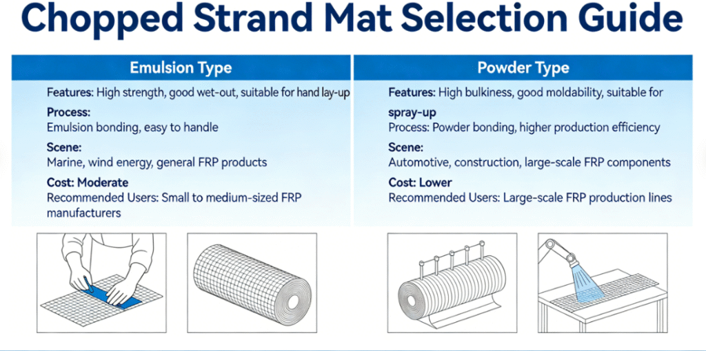 Back to the original question: how to choose the emulsion/powder binder of glass fiber chopped strand mat? Will it affect the quality of the finished product? I believe that through the explanation in this article, you have a clear answer – it will affect, and it is a decisive impact, and the core of selection is “matching needs”: