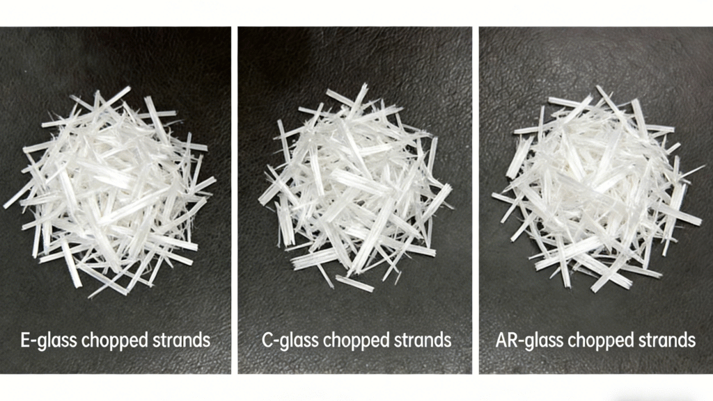 The glass type of glass fiber chopped strands is mainly divided into E-glass, C-glass and AR-glass. Different types of glass fibers have great differences in chemical properties and mechanical properties, and the applicable auto parts scenarios are also different. For auto parts customers, the core of choosing the glass type is “matching the use environment and performance requirements of the parts”, avoiding part failure due to wrong glass type selection.